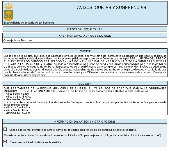 Otra forma es elevar una queja/reclamación directamente al Ayuntamiento de Bormujos. A través de su Sede Electrónica lo puedes hacer desde casa, adjuntando toda aquella documentación que acredite esta circunstancias.