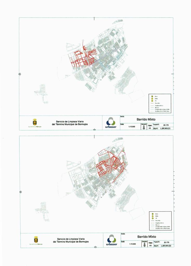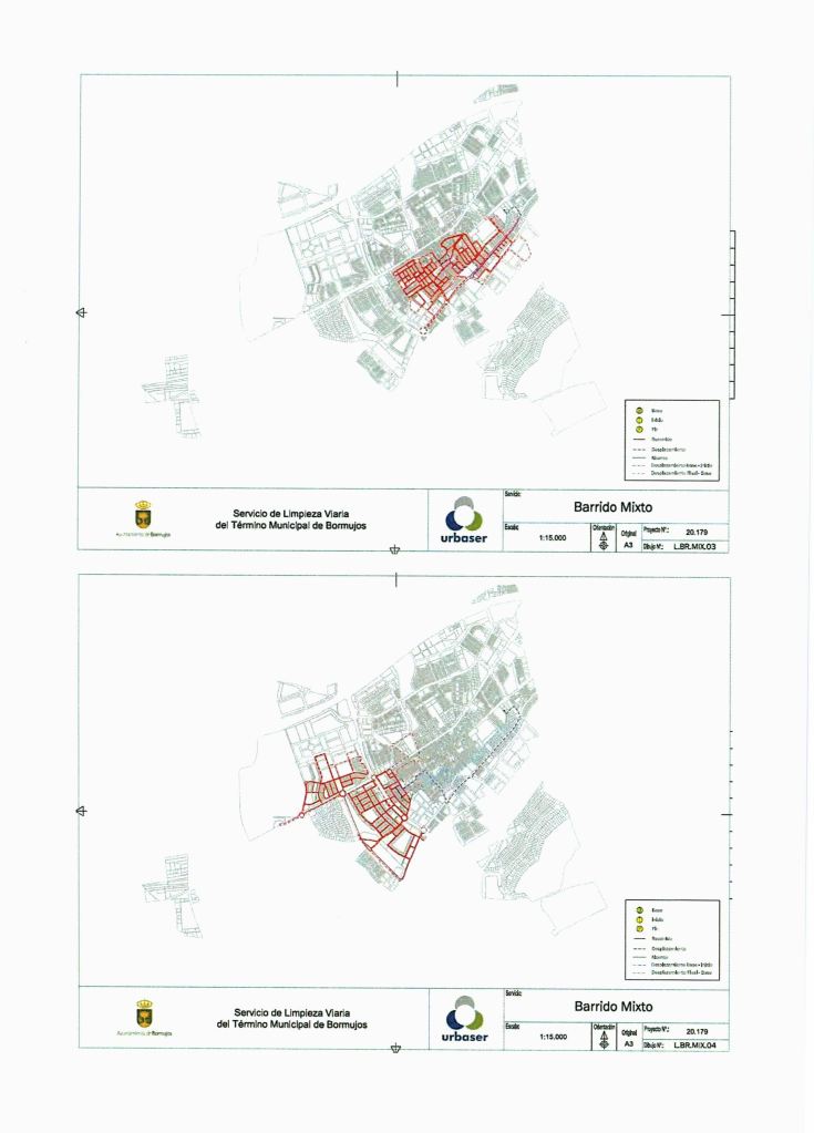 - Las Zonas de Bormujos donde se efectuará el barrido manual combinado con el barrido mecánico