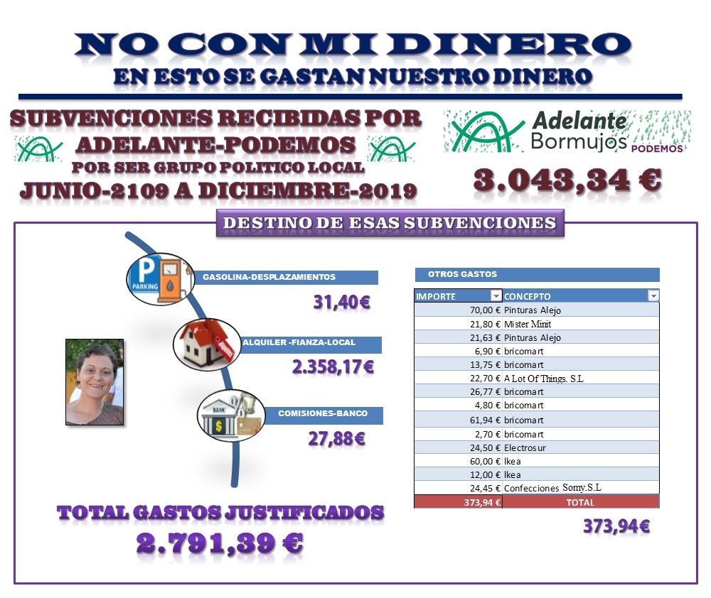 En esto se gasta este grupo político: ADELANTE-PODEMOS, las subvenciones a cargo de nuestro presupuesto, que le otorga el Pleno del Ayuntamiento.